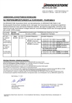 Unbedenklichkeitsbescheinigung für Bridgestone Reifen Schriftliche Bestätigung der Fa. Bridgestone